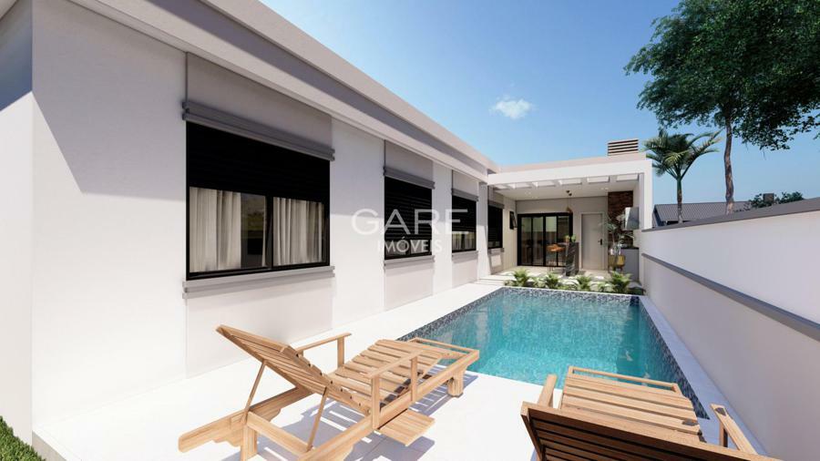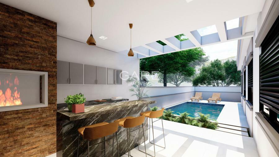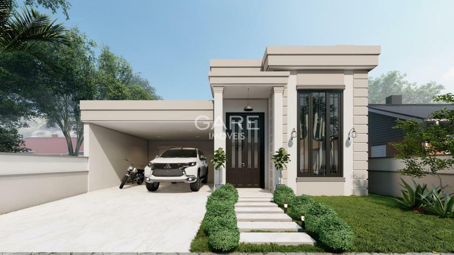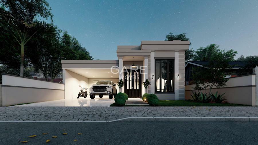 Projeto com 4 dormitórios sendo 1 suíte, 2 dormitórios, 1 suíte master, closet, home-office, sala de estar c/ lareira, sala de jantar, cozinha, lavanderia na garagem, quiosque c/ churrasqueira e lavabo, pátio c/piscina.